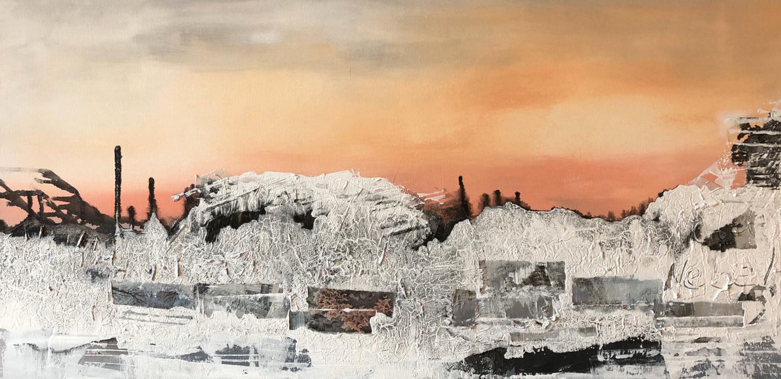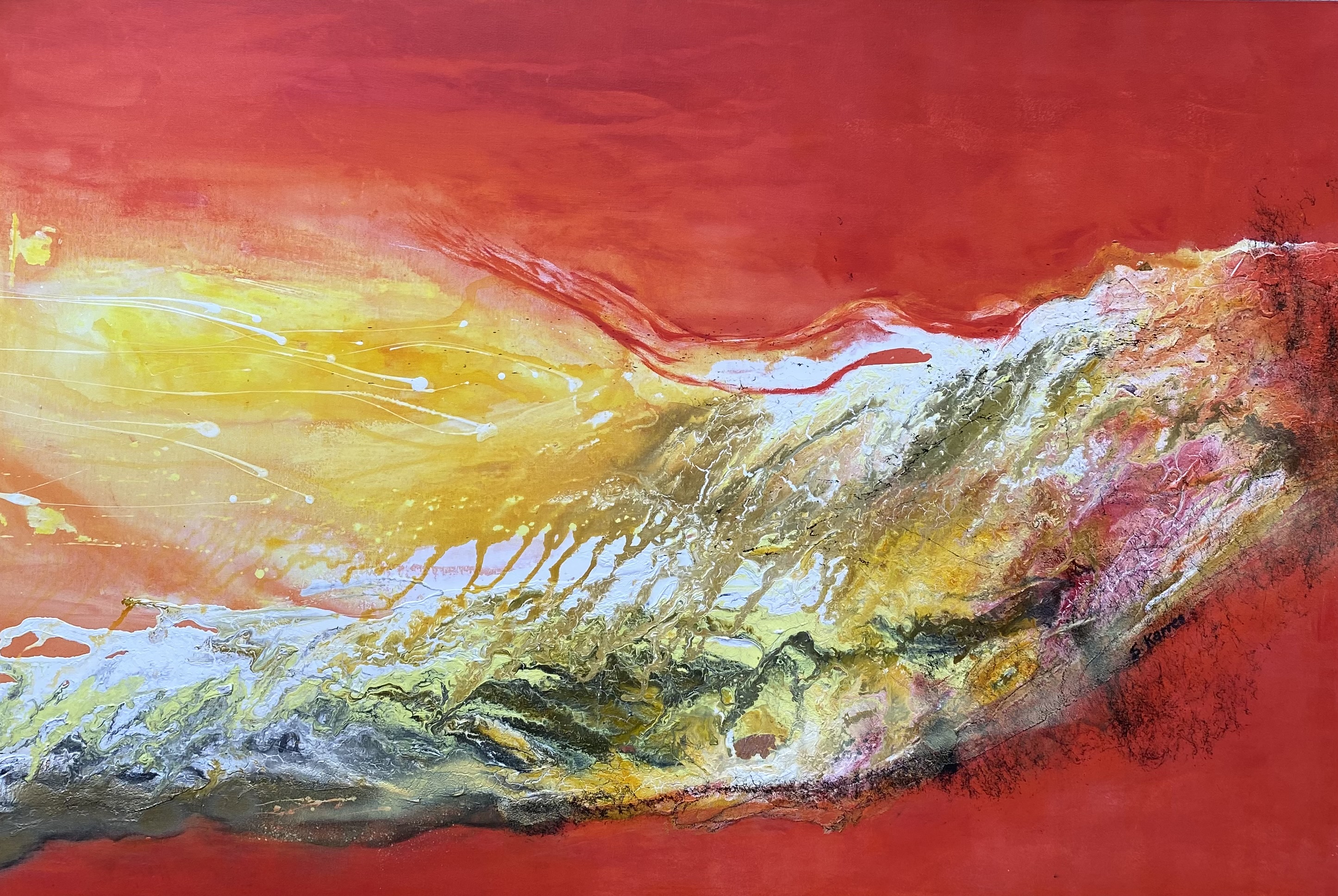 Acrylfarben, Strukturpaste, Pigmente, Kreide auf Leinwand,