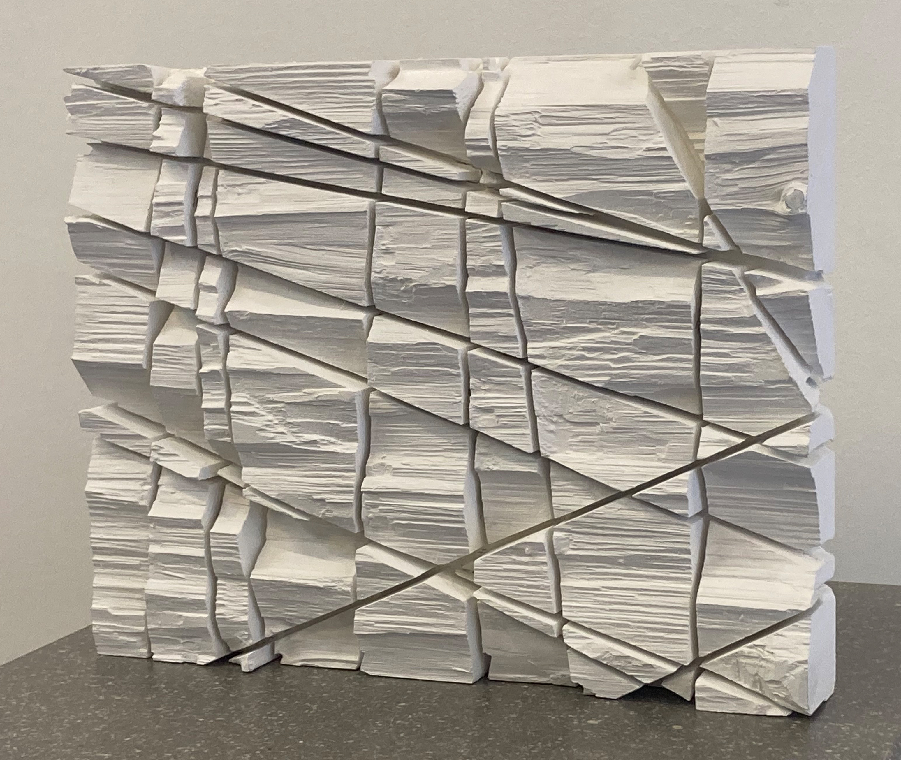 Einschnitte sind oft verletzend, hart und scharf. Einschnitte prägen aber auch, ergeben oft definierte Strukturen. Claus Peter Berneth verwendet bewusst die Kreissäge, um klare Einschnitte zu realisieren. Faserbrüche im Holz lassen raue und markante Oberflächenstrukturen entstehen. Durch Einfärbung lässt sich die Dynamik der Strukturen steigern und individualisieren.